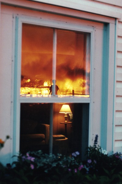 Here is Nels again in the reflection. The lamp is inside the house. This angle was Helen's idea.