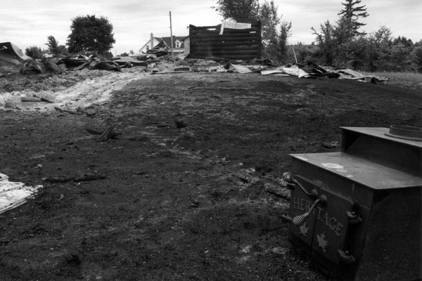A Heritage wood-burning stove makes an ironic comment on its surroundings. Here I'm standing near Amy's building.