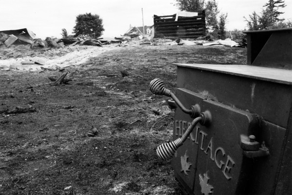 Another Heritage view. The white at upper left is the ashes of the barn wall. This corner of the barn formed two of the walls of the swing room, where Stazie was.