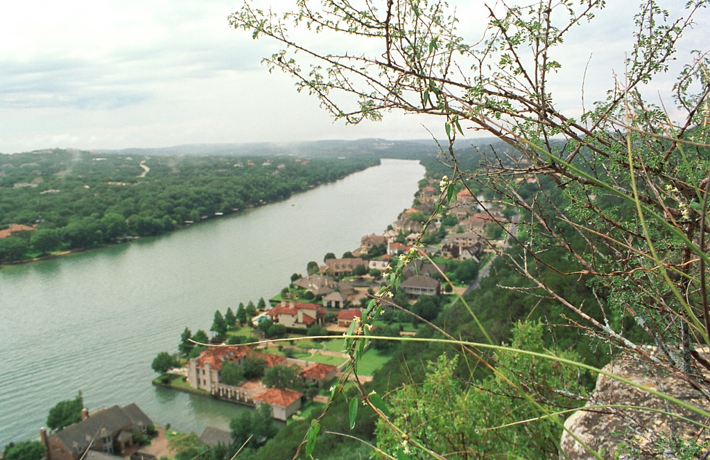 This is a view from on top of Mt. Bonnell in Austin, TX. In the distance you can see the 360 bridge over the Colorado River.
